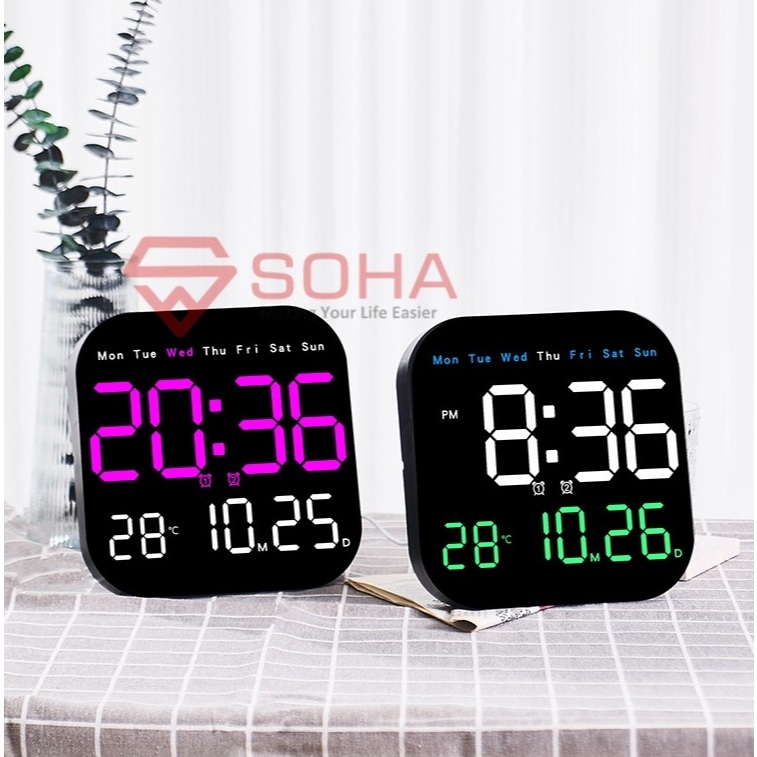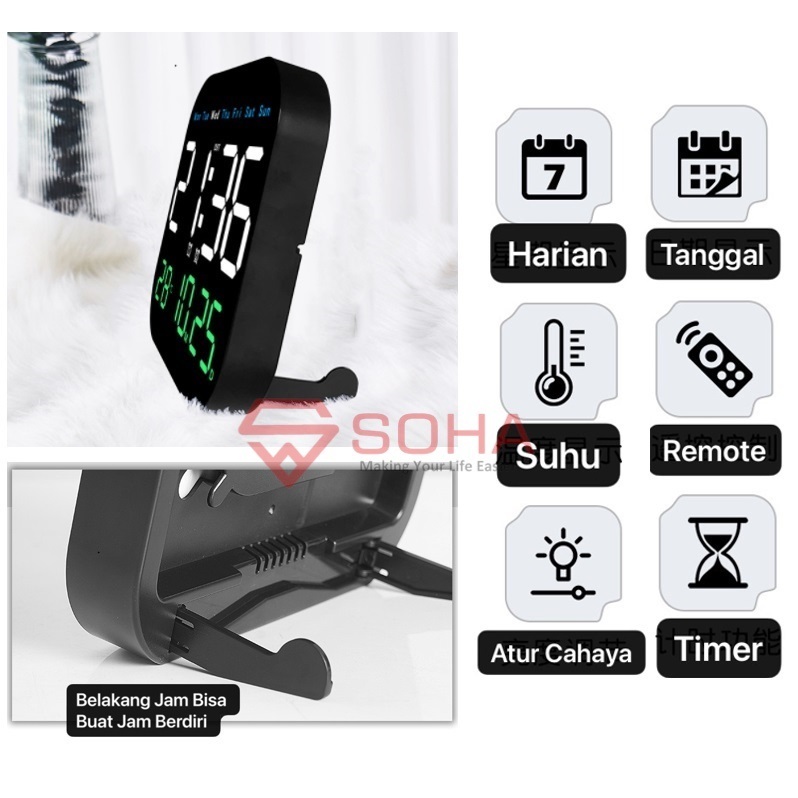 Jam Dinding Digital LED Wireless Tampilan Tanggal Suhu Dekorasi Kalender Alarm Clock Weker Free Remote Bisa Standing