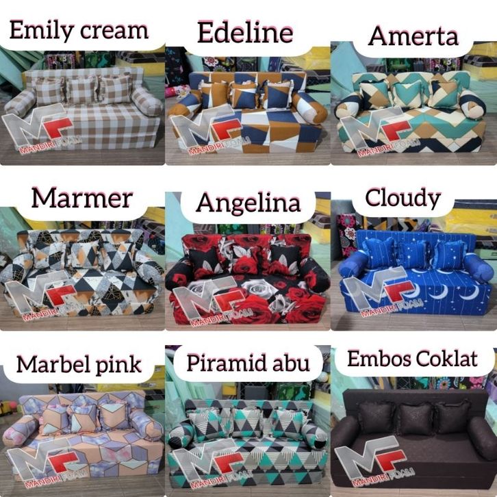 Alexander, Angelina, Astronot, Baby triva, Bulbin navy, Butterfly biru, Butterfly ungu, Cloudy, Daun hijau, Doraemon, Embos coklat, Embos navy, Embos ungu, Emily cream, Flamingo hitam, Kotak hitam, Kuromi, Marmer, Maroon embos, New organza ungu, Padi hijau, Padi merah, Pajero abu, Pajero hitam, Piramid abu, Polos abu, Red rose, Sakurako navy