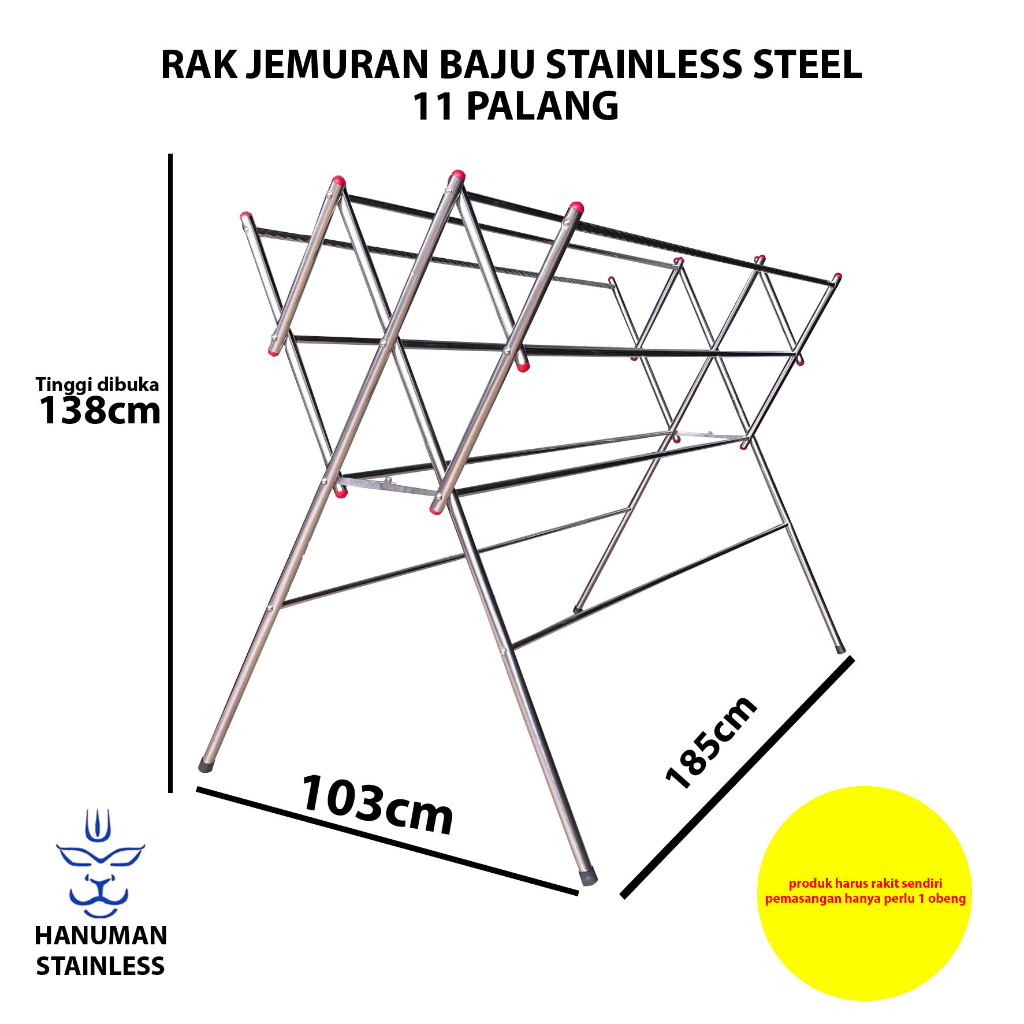 HANUMAN STAINLESS Rak Jemuran Baju Stainless Steel Anti Karat 11 Palang
