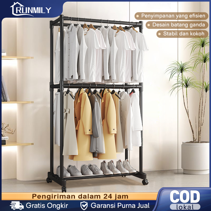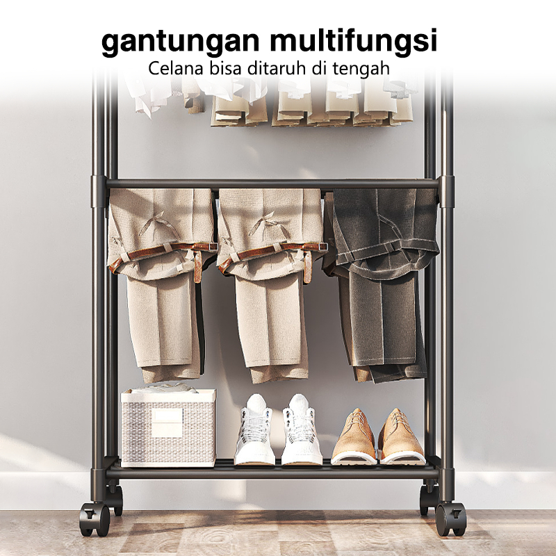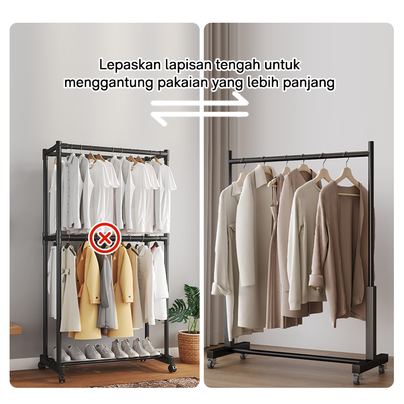 ⚡️Stand Hanger Gantungan Rak Besi⚡️Gantungan Baju Double/Jemuran Serbagun/Rak Gantungan Baju/Rak Gantungan Baju Besi Sta