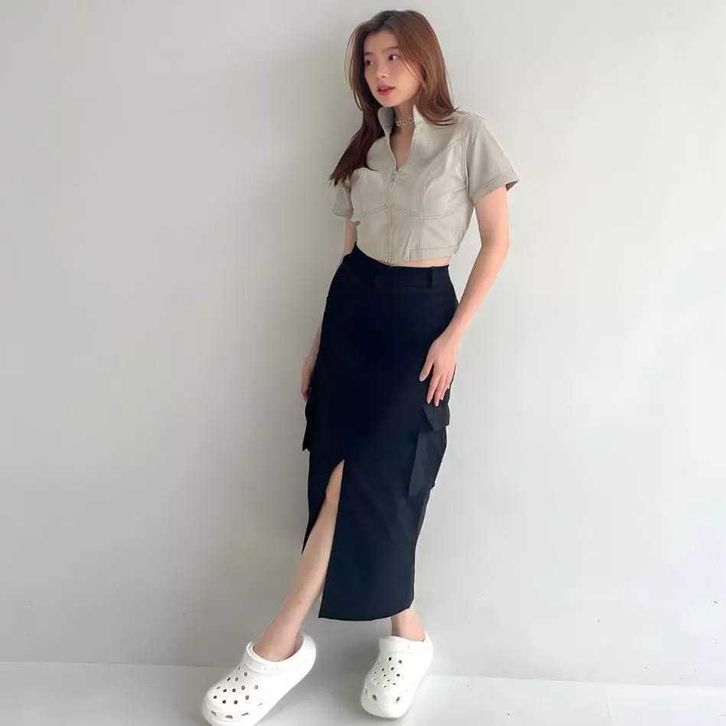 ROK CARGO WANITA / ROK CARGO KOREAN SKIRT STYLE AMERICAN DRILL ROK SPAN BELAH JUMBO ROK CARGO SKIRT