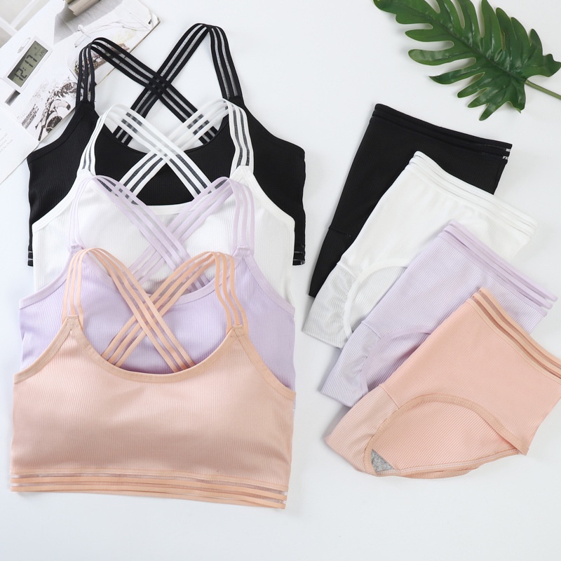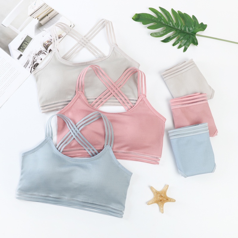 Pinky Bra Set Wanita Bahan Lembut Model Tali Silang 1058