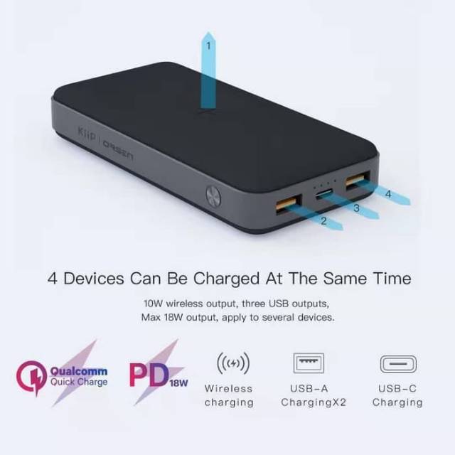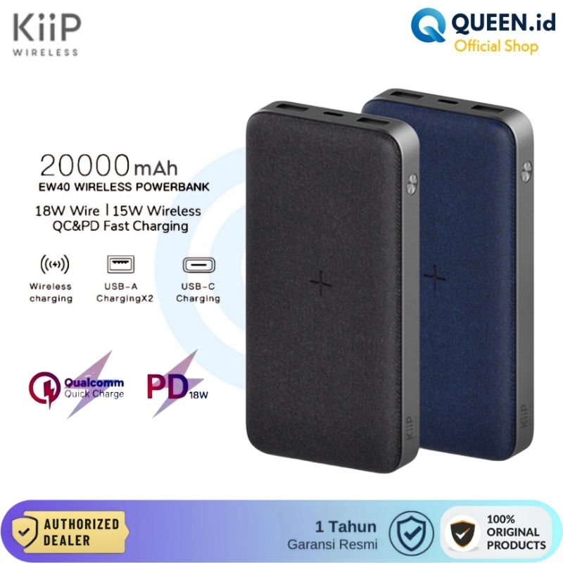 KIIP EW40 20000 MAH POWERBANK QC 3.0 PD WIRELESS CHARGING 18W 3IN1 POWER BANK 20000MAH FAST CHARGING