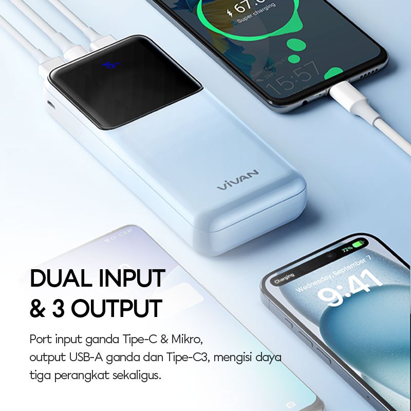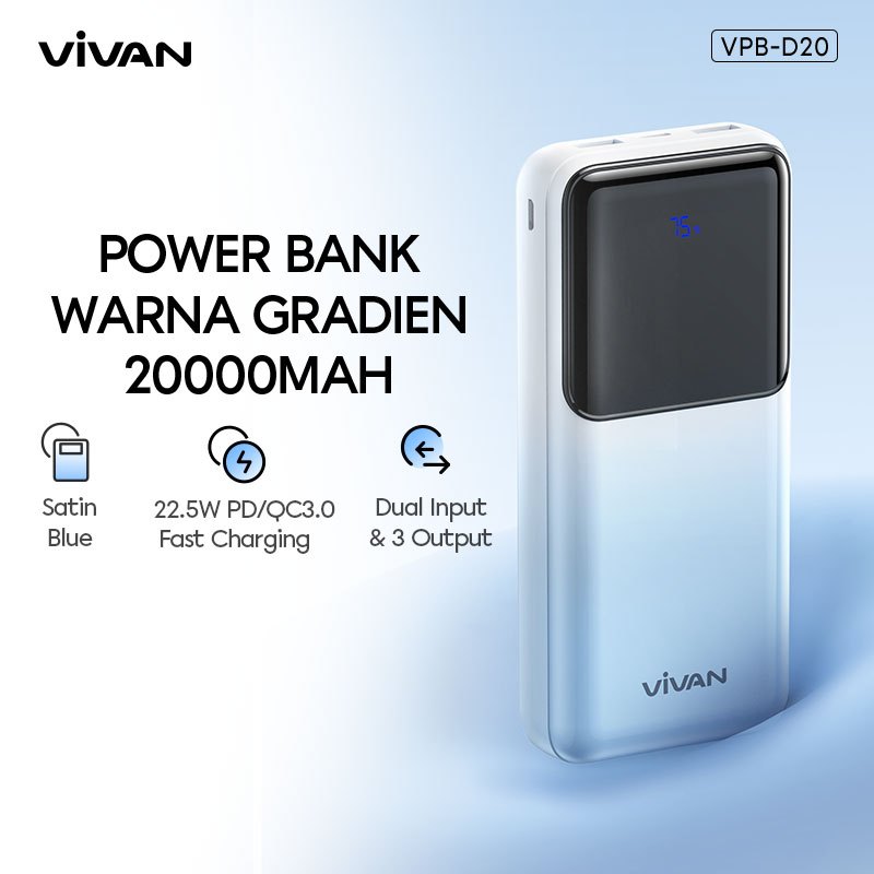 VIVAN POWERBANK 20000MAH FAST CHARGING 22.5W 2 INPUT 3 OUTPUT VPB-D20 GARANSI 18 BULAN