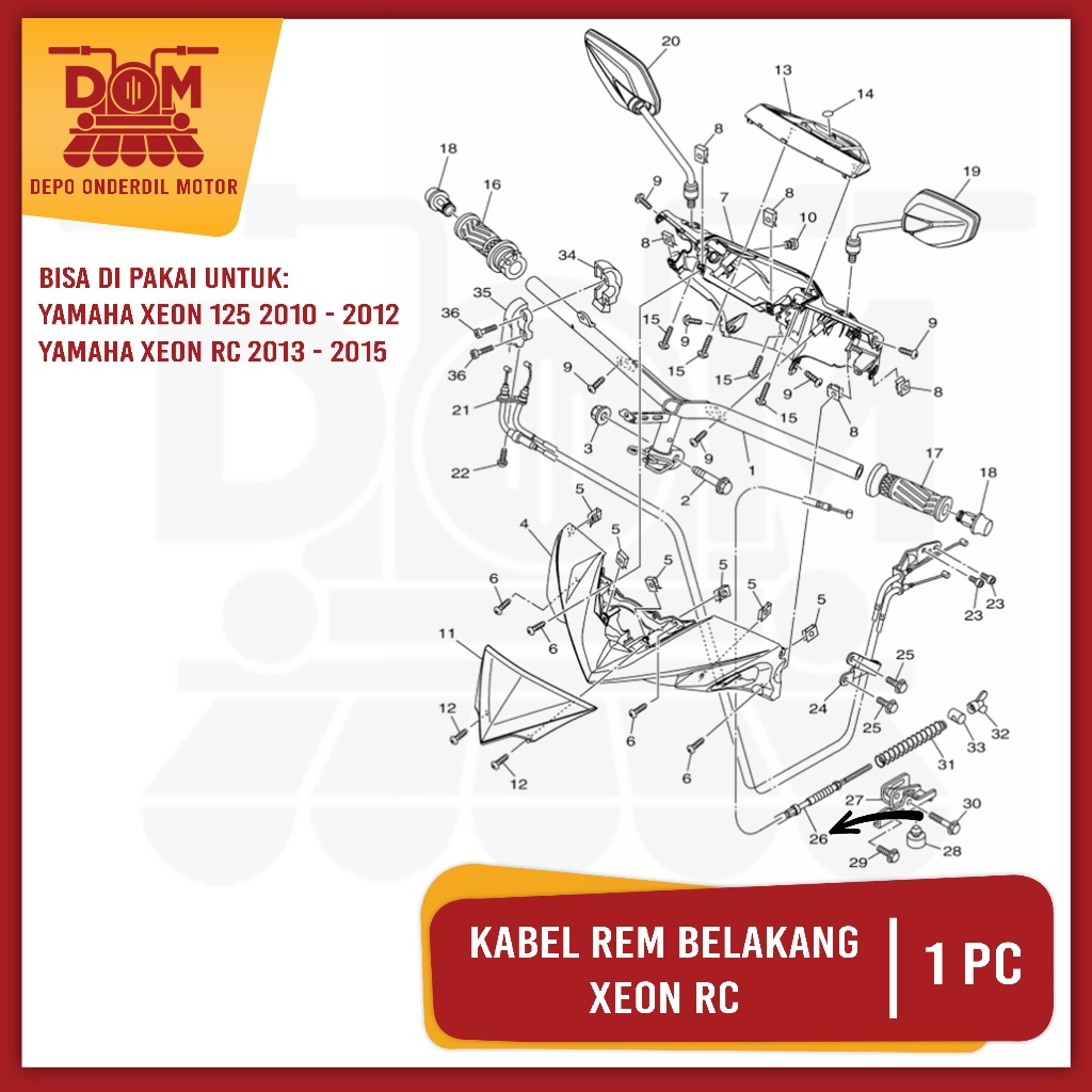 Kabel Rem Belakang Xeon RC (KAGAYAKU) Brake Cable Seling Tali Kawat Iner Rim Belakang Yamaha Xeon GT