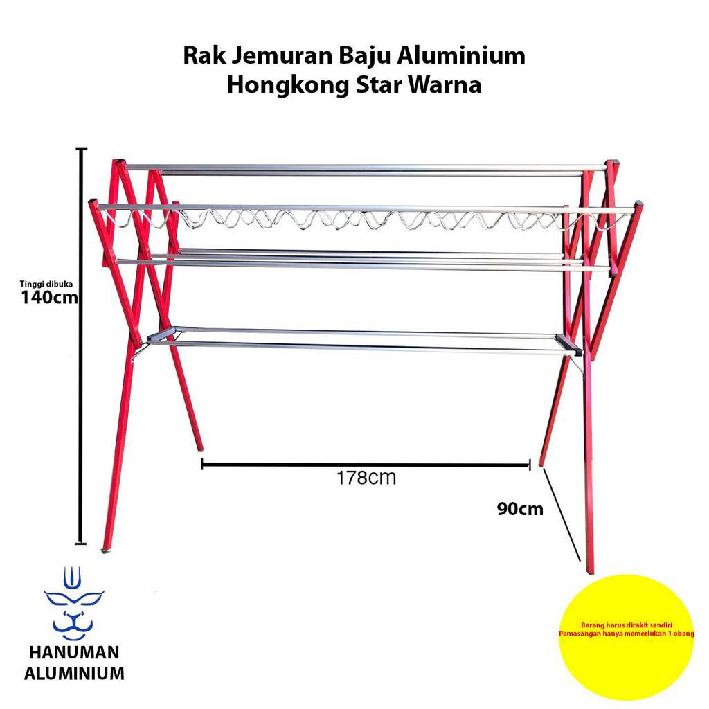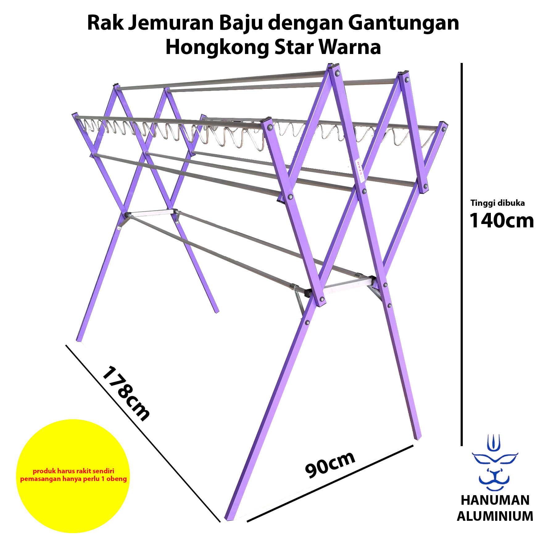 HANUMAN ALUMINIUM Rak Jemuran Baju 9 Palang Warna dengan Hanger / Gantungan