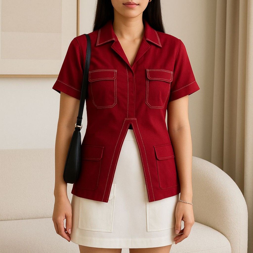 Vallina Outfit - Nikita Blouse Atasan Wanita Matt Katun Linen l Lengan Pendek OOTD Korean Style Casual Daily