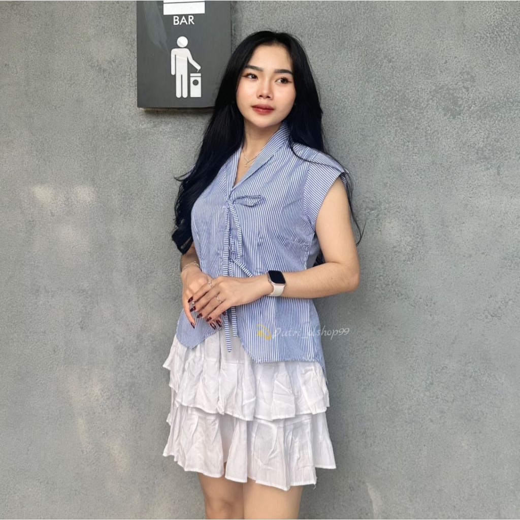 Blaire Kemeja Vest | Atasan Wanita Stripe by putri_olshop99