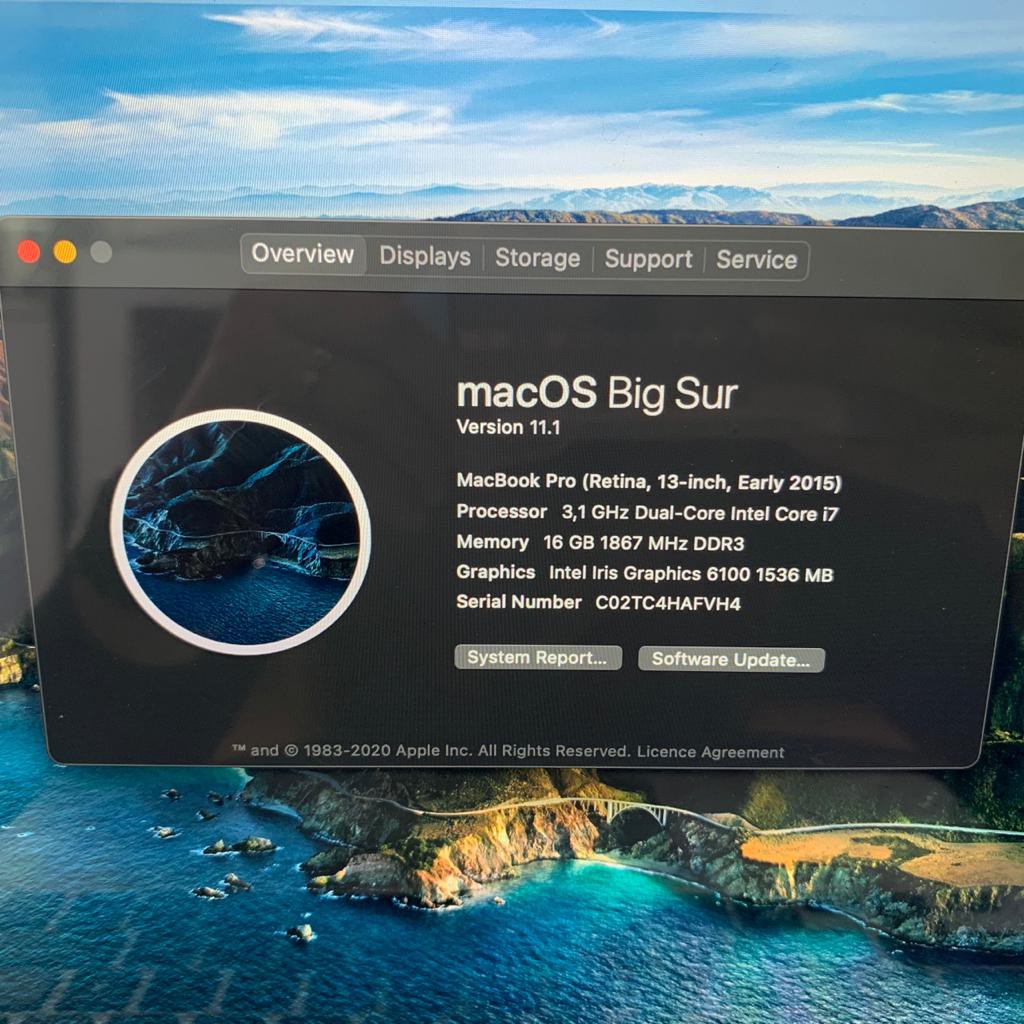 MACBOOK PRO RETINA 13 INCH EARLY 2015 COREI7 3.1GHZ RAM 16GB SSD 512 GB ORIGINAL