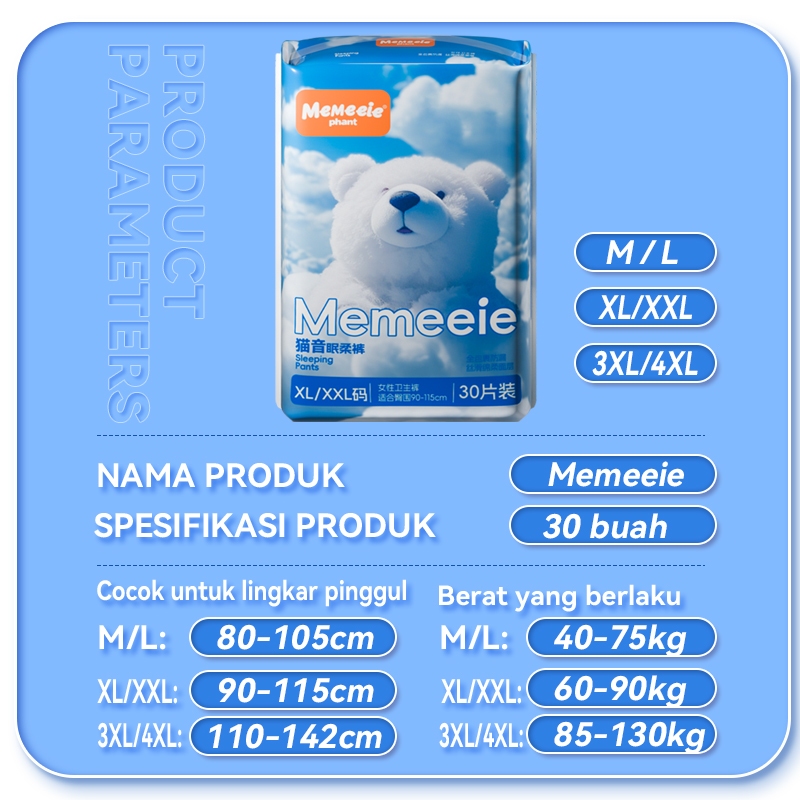 Memeeie Pembalut wanita, tabung super tipis dengan cepat, lembut dan halus tahan, pak 30 lembar
