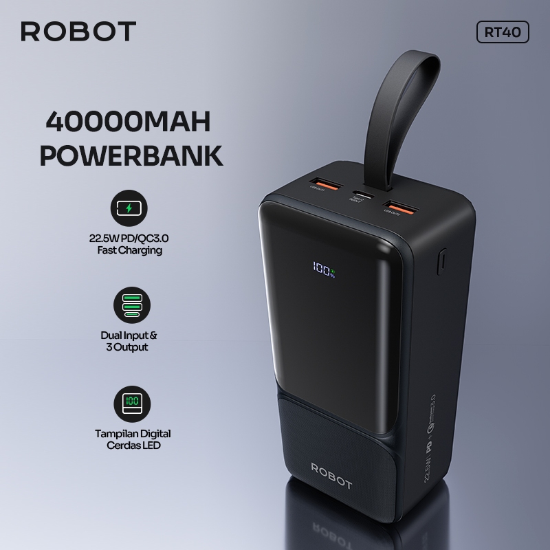 ROBOT POWERBANK FAST CHARGING 22.5W 40.000MAH REAL CAPACITY 3 PORT USB TYPE C RT40 ORIGINAL GARANSI 1 TAHUN