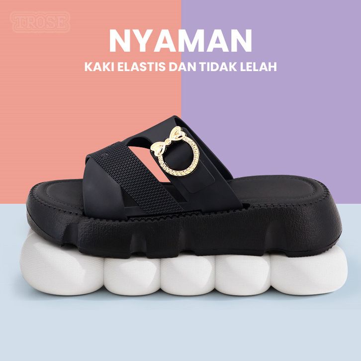 TROSE Sandal Platform Wanita Karet Tebal Empuk Sandal Fuji Wanita Korean Style Jelly Wedges
