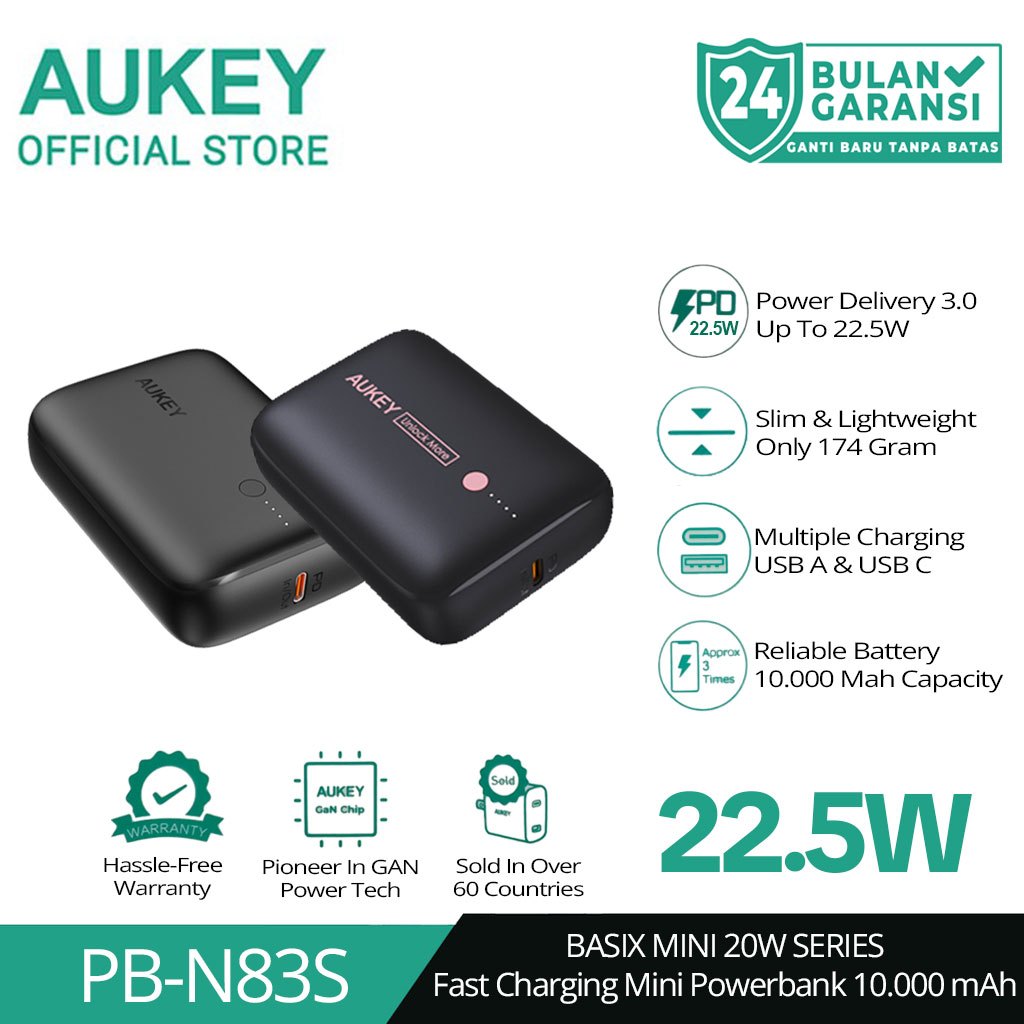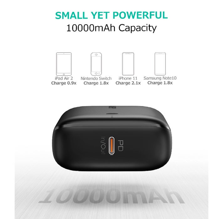 AUKEY POWERBANK 10000MAH PB-N83S USB C 22.5W PD 3.0 SLIM BLACK