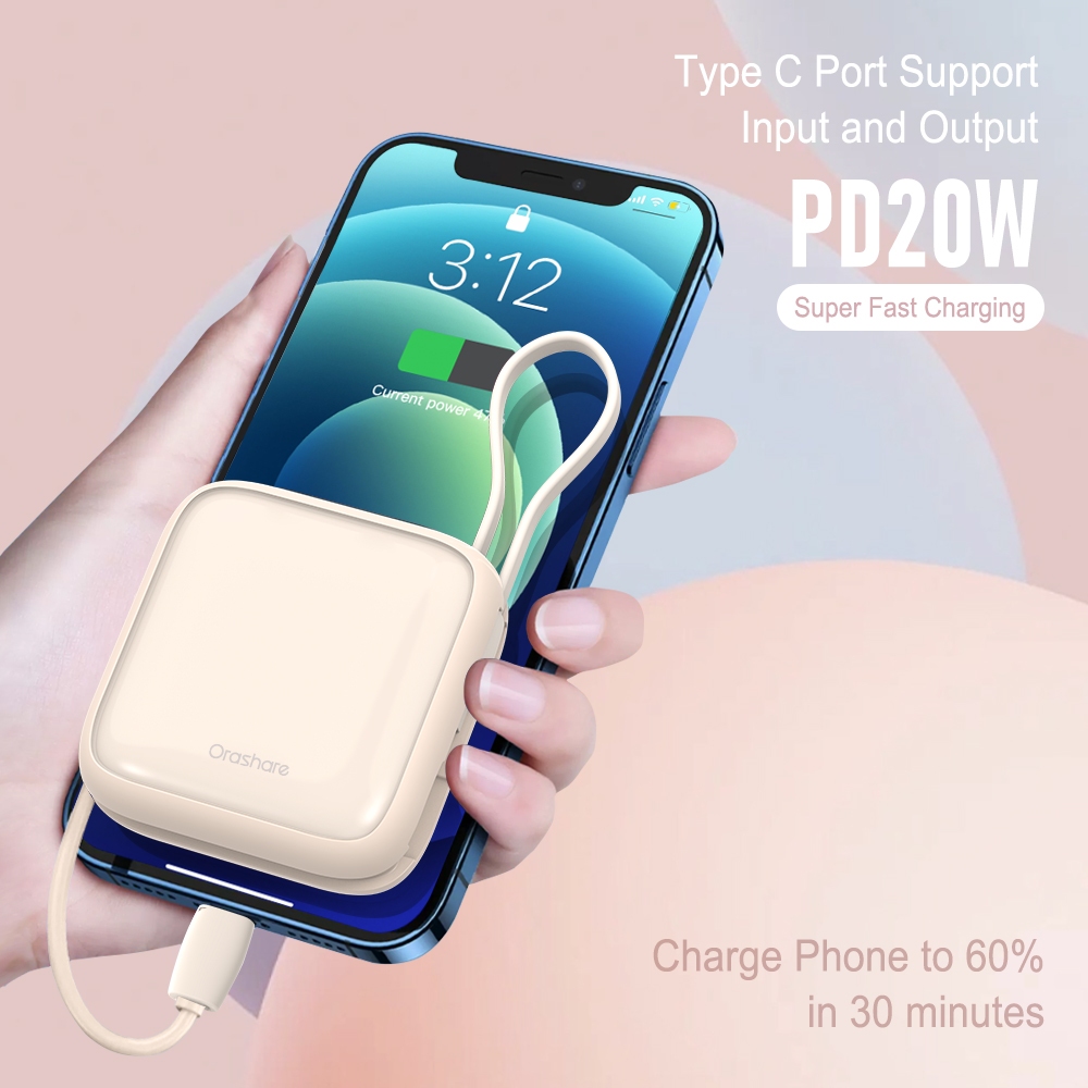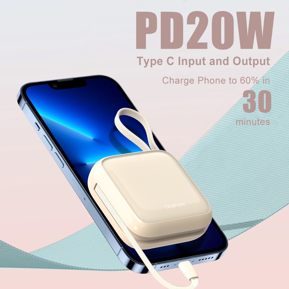ORASHARE PCM10 10000MAH POWERBANK SUPER MINI POWER BANK 22.5W SUPER FAST CHARGE BUILT IN DUAL CABLE
