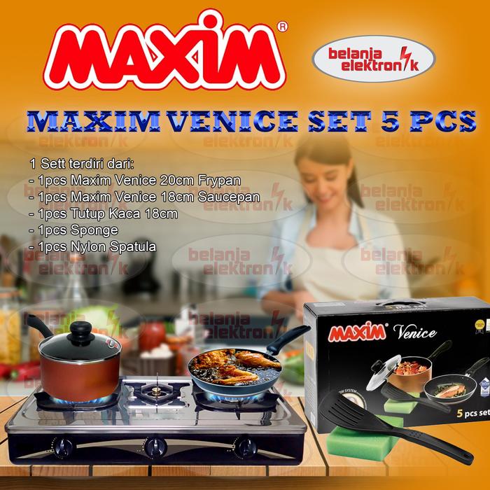 Terlaris MAXIM VENICE 5 PCS SET WAJAN PENGGORENGAN PANCI TEFLON DAN SPATULA ANTI LENGKET Keren