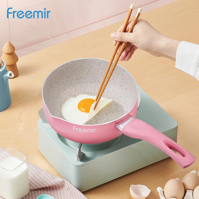 Terlaris [SPECIAL] freemir 2 Pcs Set Wajan Panci 16 Cm Pink Bakelite Anti Lengket MPASI Kitchenware Elegan