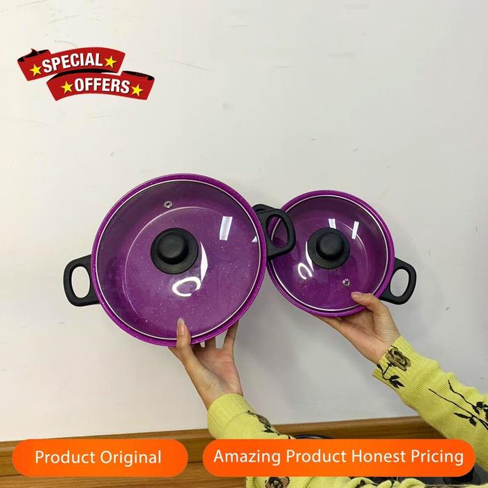 Terlaris Panci Set 13 Tutup Kaca Serbaguna Panci Set Lengkap Stainless Steel - CENTRAL GROSIR PGC - ungu Elegan