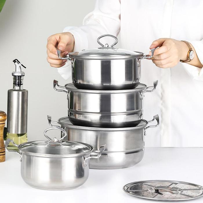 Murah Panci Kukus 1 Set Isi 5 Pcs High Pot soup Steamer Kukus Stainless Stell Keren