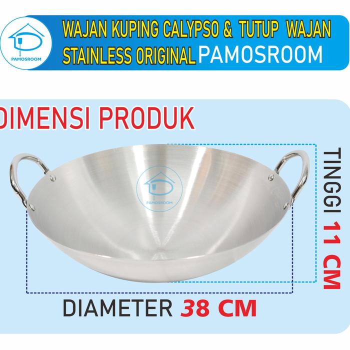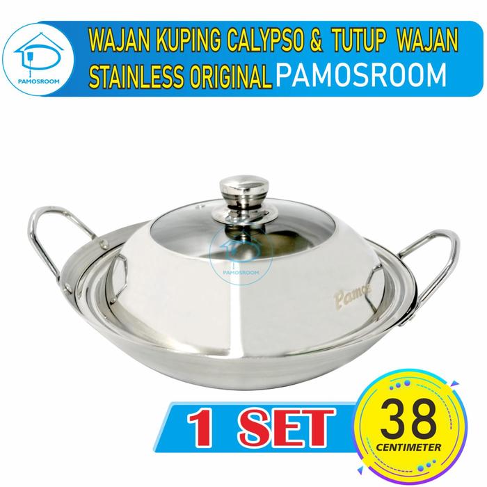Promo Pamosroom Wajan Stainless 1 Set + Tutup 38cm Kuali Panci Anti Lengket Keren