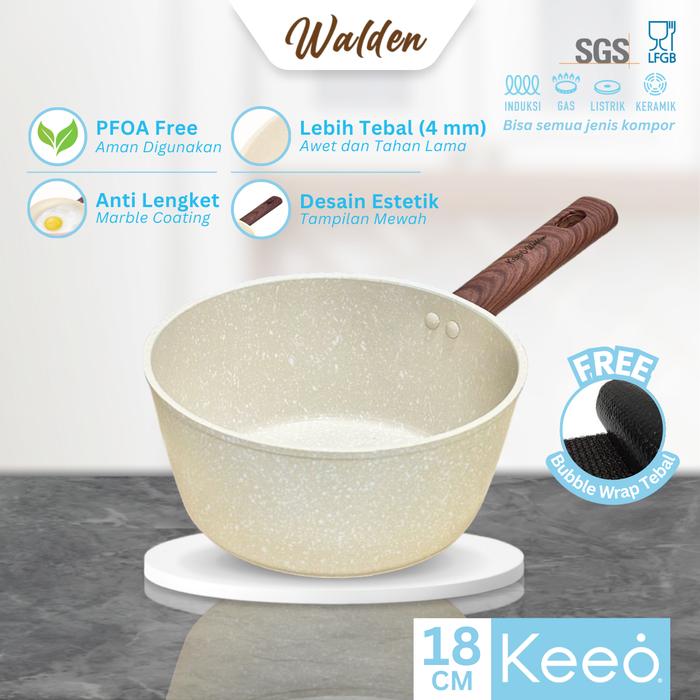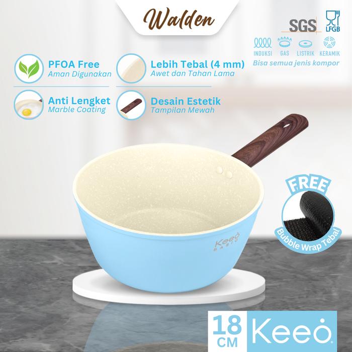 Murah Keeo Walden 18 cm Panci Sauce Pan Anti Lengket Marble Granit Alat Masak - Pink Elegan