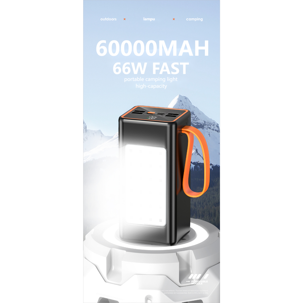 HESTER 60000MAH POWERBANK FAST CHARGING 66W FAST CHARGING POWER BANK ORIGINAL 100 PERSEN CAMPING LAMPU POWERBANK