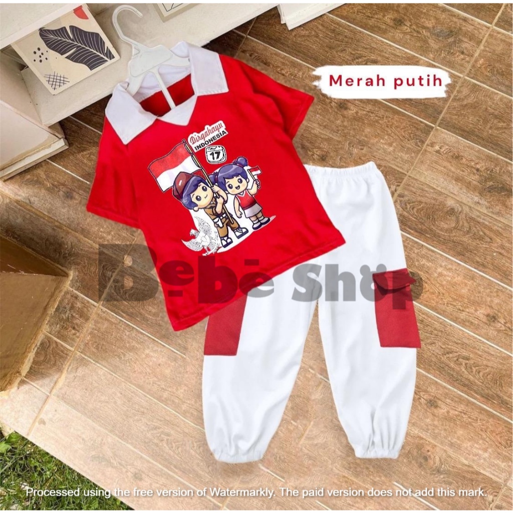 Setelan baju merah putih kemerdekaan indonesia 17 agustus untuk anak perempuan dan laki-laki usia 1 sampai 10 tahun baha