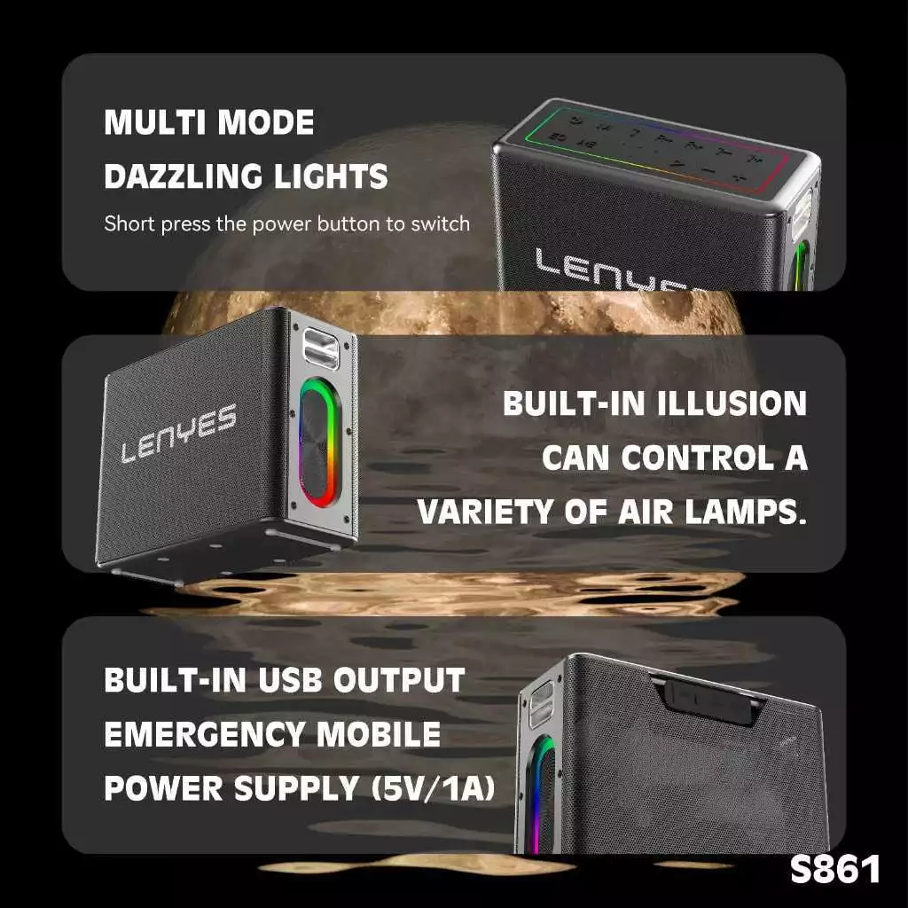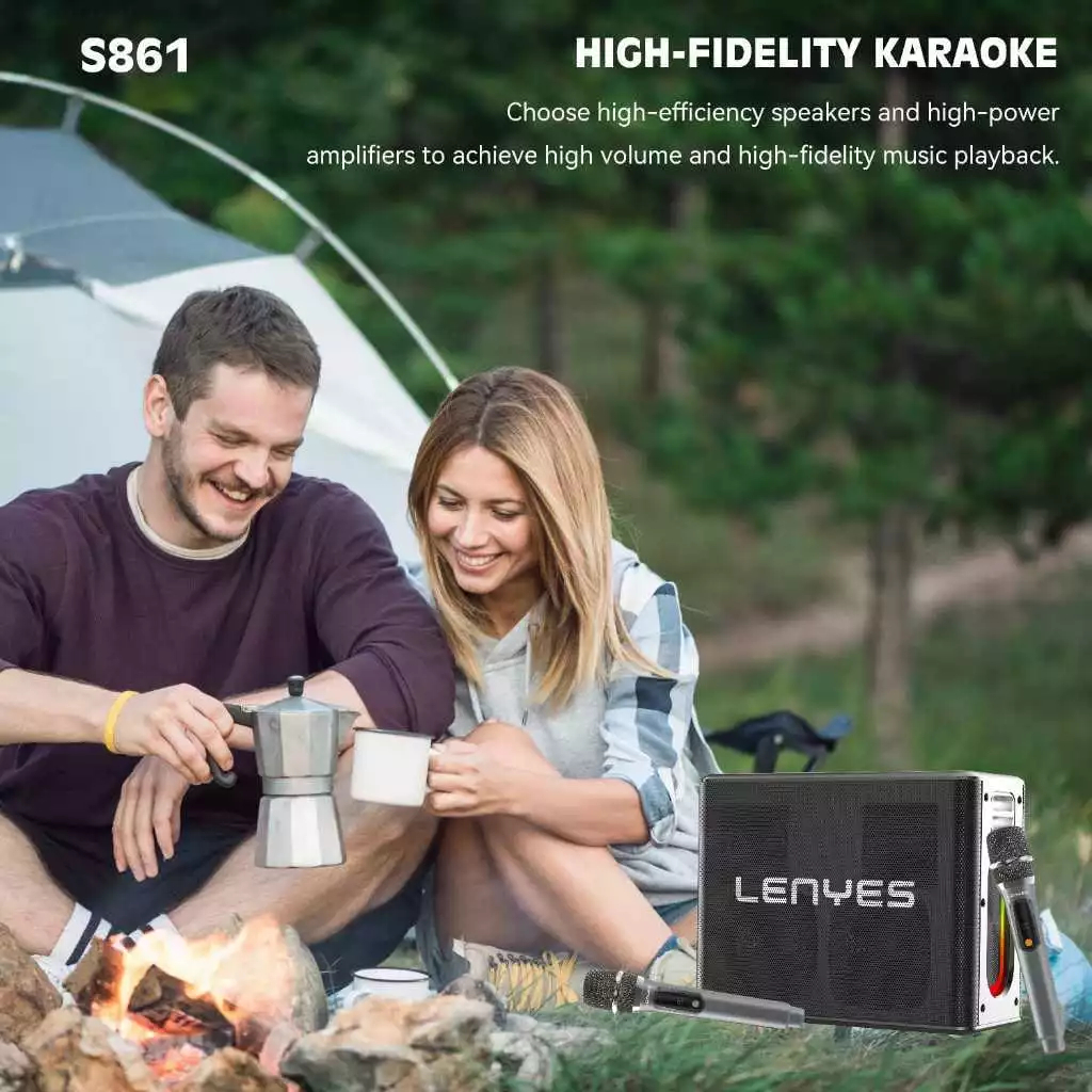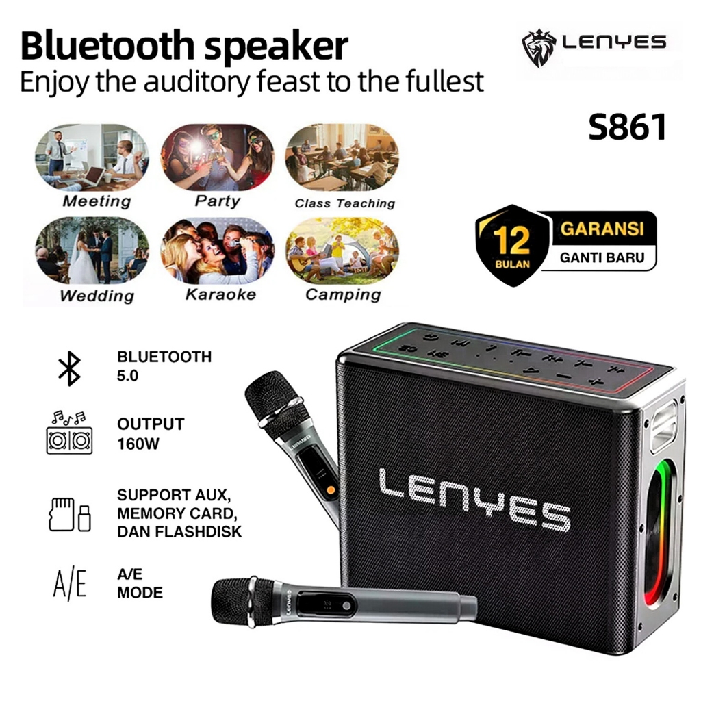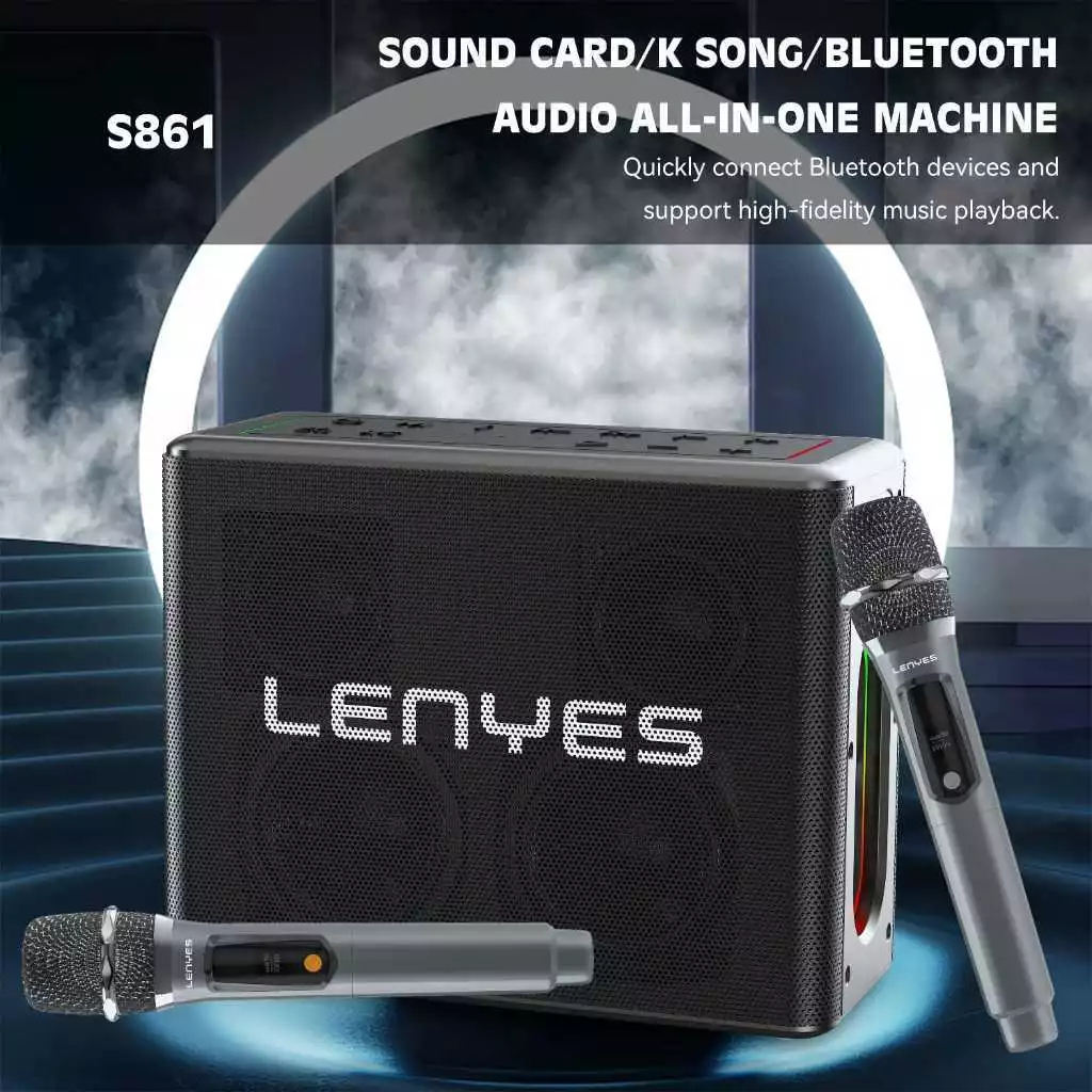 [Mall] LENYES S861 150W KTV RGB LED Light Wireless Speaker + Microphone Karaoke Bluetooth 5.0 Portable High Power