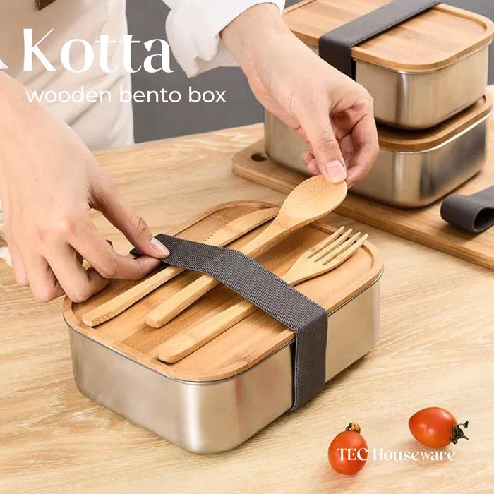 【TEC】KOTTA Bento Box Kotak Makan Stainless Steel 304 Berkualitas Tutup Kayu Kotak Penyimpanan Makanan Bekal Makanan