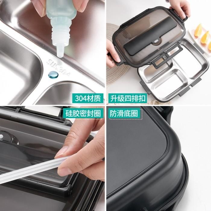 Lunch Box Kotak Bekal Makan Bento Stainless 3 Grid Sendok dan Sumpit