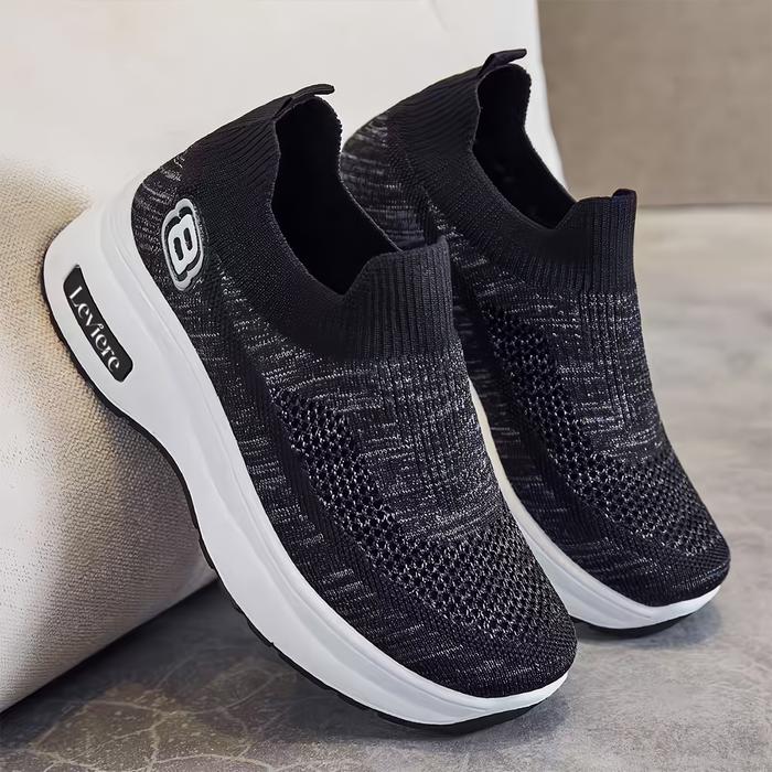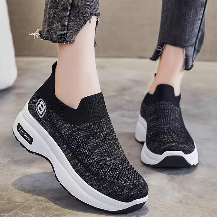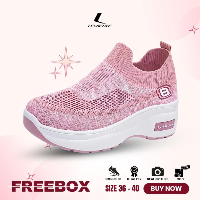 Terlaris LVR FREE BOX LV0157 Sepatu Sneakers Wanita Motif 8 Tinggi Comfort / Sepatu Wedges Casual - Hitam 36 Elegan