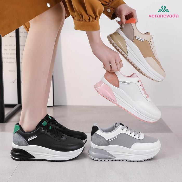 Terlaris VN Sepatu Cia Sneakers Casual Wanita Sport Black Pink Shoes V008 - BLACK 37 Keren