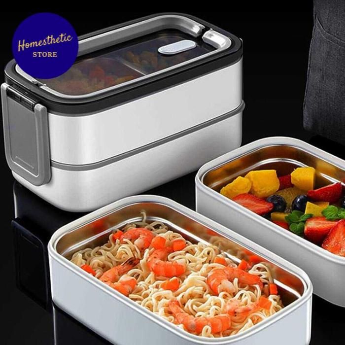 Kotak Makan Bento Bekal Lunch Box Stainless Steel + Sendok Sumpit