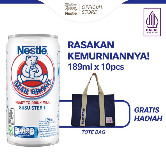 Murah Bear Brand White Milk Susu Beruang Steril 189ml x 10pcs Free Hadiah - Shopping bag Elegan