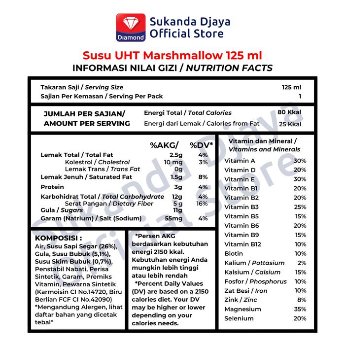 Promo Diamond Milk Susu UHT Marshmallow 125 ML 1 Karton - Spesifikasi Elegan