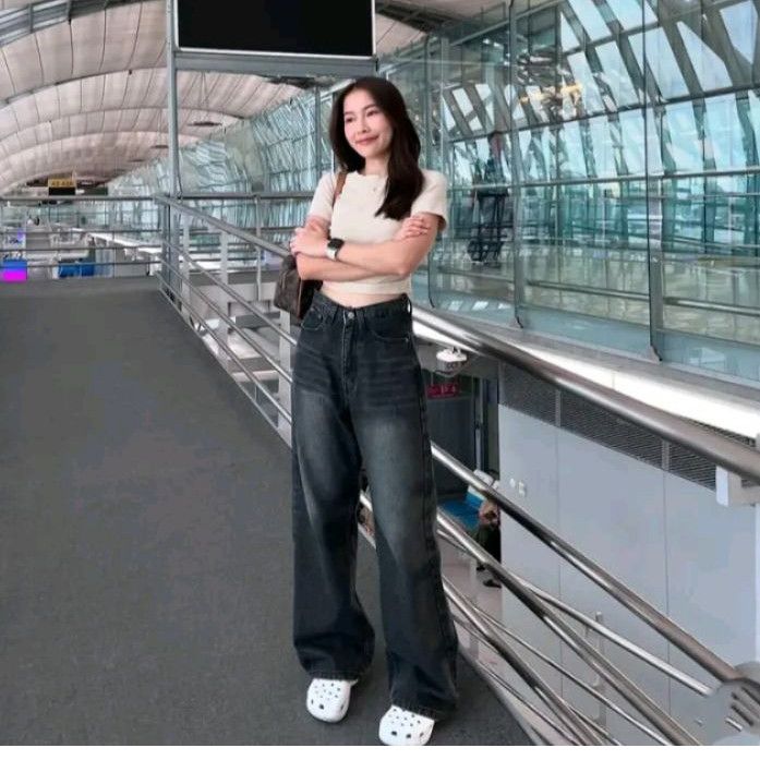 Celana Baggy Loose Jeans Retro Wanita Highwaist Baggy Loose Jeans Wisker Korean Retro Non Strech Premiun Quality