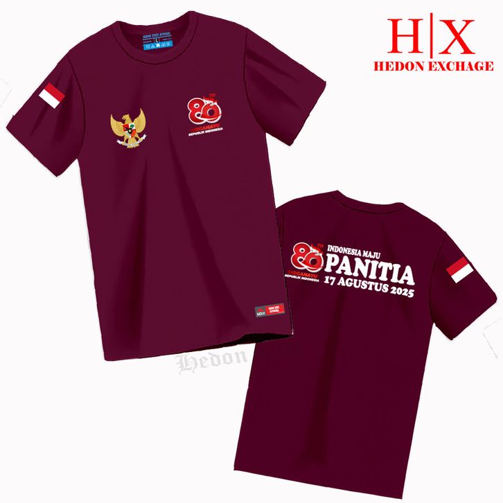 HEDON STATE Baju Pendek Panitia Hut RI Ke 80 Kemerdekaan Kaos Seragam Pria Wanita