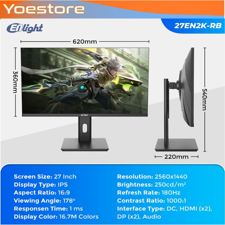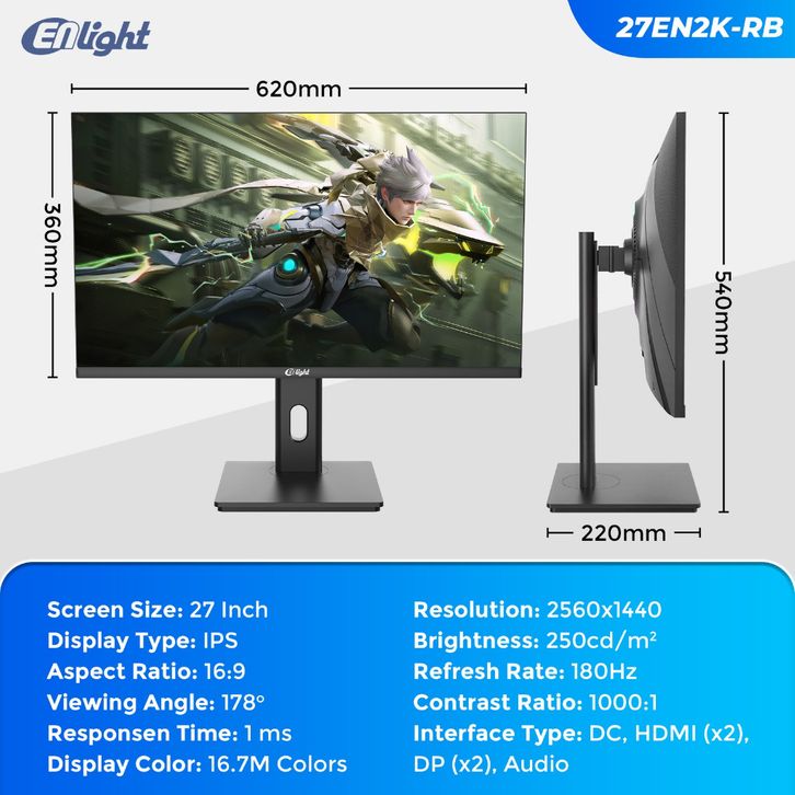 Monitor LED ENLIGHT 27EN2K-RB 27" IPS 2K QHD RGB Gaming Monitor 180Hz