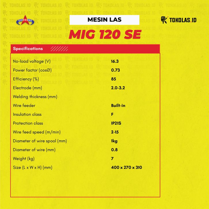 MESIN LAS TRAVO TRAFO LAS CO2 INVERTER WELDING MACHINE DAESUNG MIG 120 SE FLUX CORED FCAW TANPA GAS CO KOREA LIFT TIG AR
