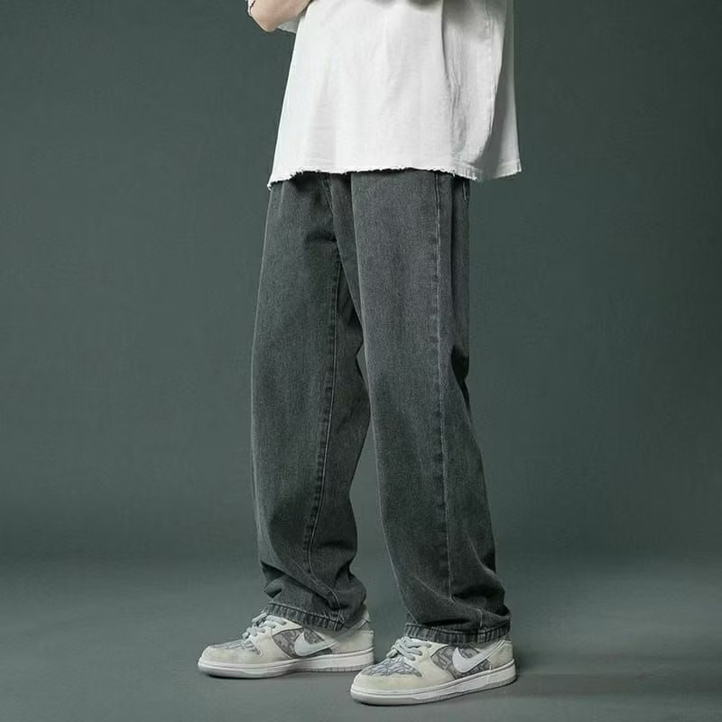 Celana Jeans Baggy Cargo Kulot Pria Jumbo Black Wisker Loose Fit Reguler Standard Denim Washed Skena Celana Baggy Jeans