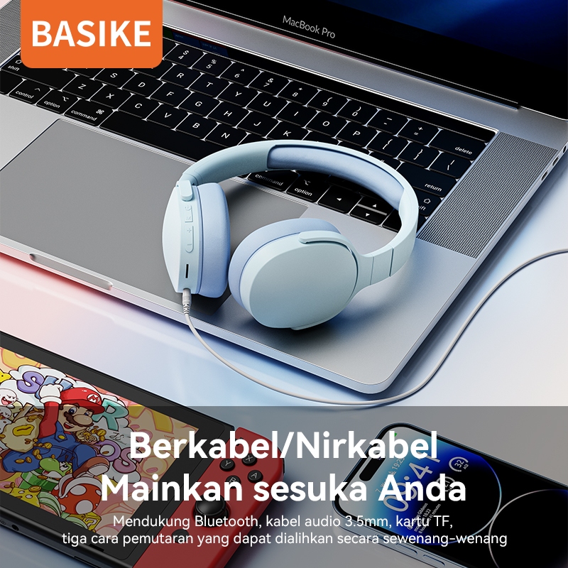 HOTBASIKE HEADPHONE WIRELESS BLUETOOTH 5.3 HEADSET GAMING MUSIC 9D HIFI FOLDABLE MAKARON ORIGINAL