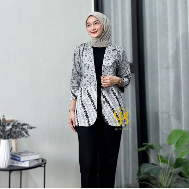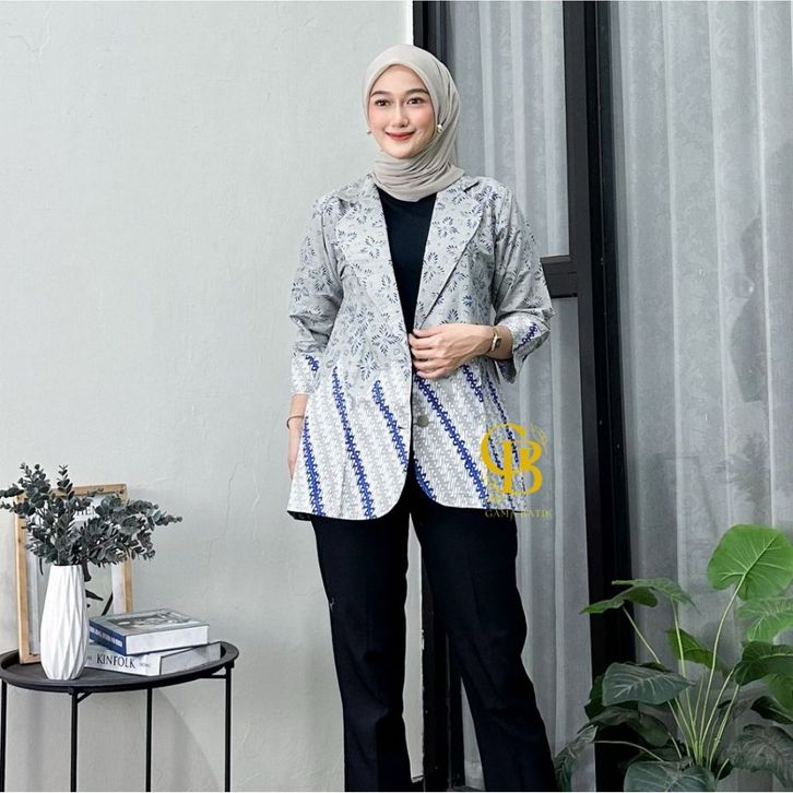UNISTORE Blazer Batik Premium Atasan Batik Wanita Modern Outer Batik Baju Kantor Motif Liris