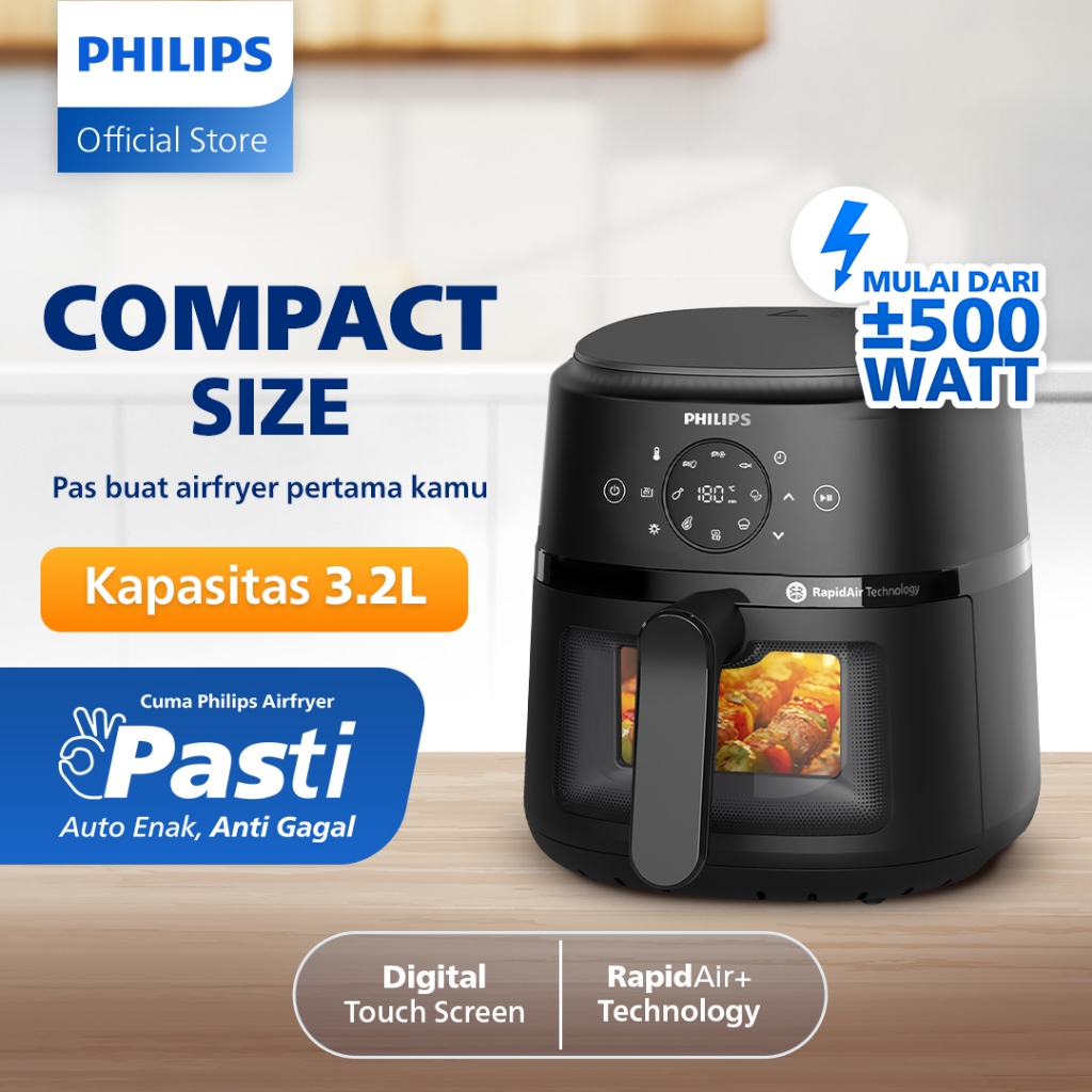 BARU! Philips Airfryer Low Watt 500W Transparan BEST COMPACT SIZE 3.2L NA210/00. Air fryer multifungsi digital layar sen