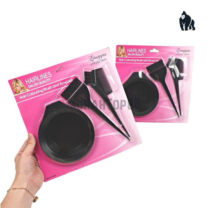 Sisir Cat Rambut Mangkuk Set / Paket Kuas Semir + Wadah - Warna