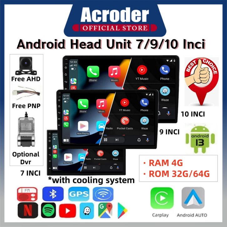 Acroder Head Unit Android 4G+32G IPS Screen 7/9/10 Inch Navigasi Double Din WiFi GPS FM Bluetooth Split screen Steering