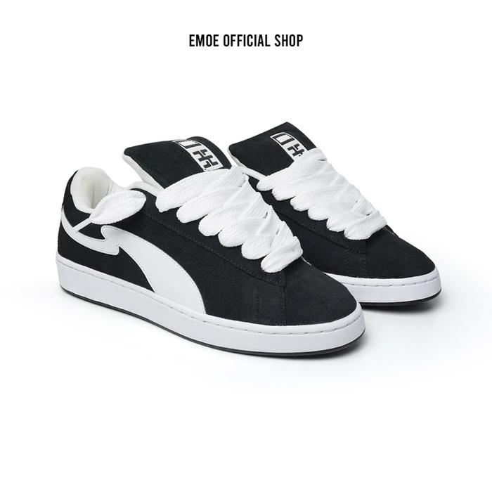 EMOE - EXCEL BLACK-WHITE, Sneakers Pria Wanita Casual Hitam Putih Elegan Shoes Karet
