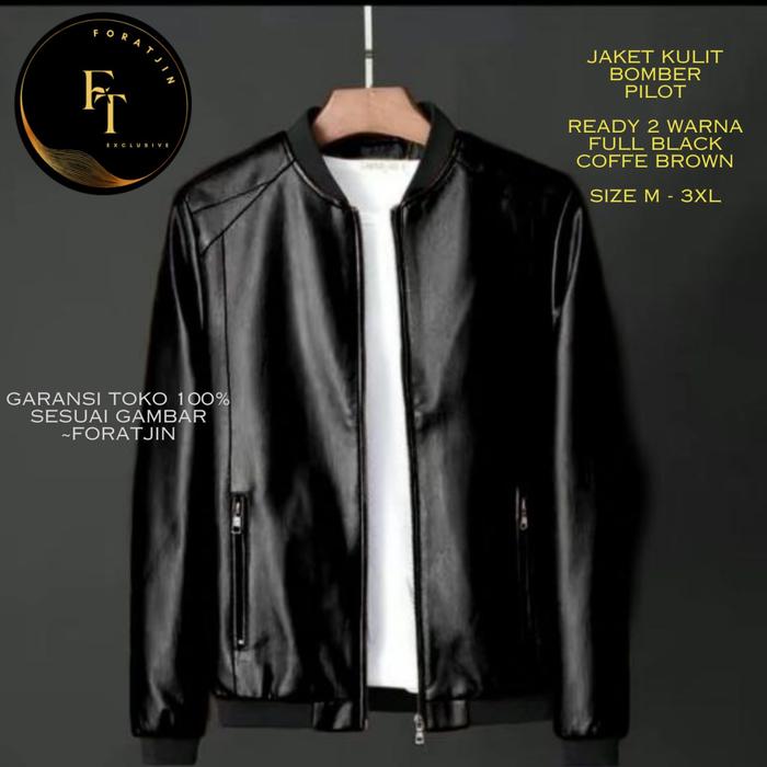 Jaket Kulit Garut Bomber PIlot Urban Style [ Hitam - Coklat ]