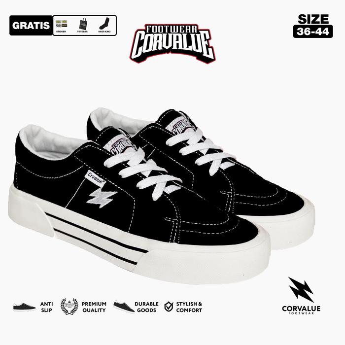 SEPATU CORVALUE FOOTWEAR - Sepatu Kasual Pria Wanita Dudley Low Black White Casual Shoes Sneakers
