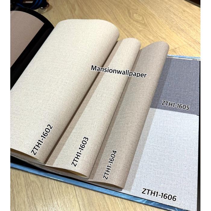 Wallpaper Dinding Polos Tekstur Linen Halus Cream Abu