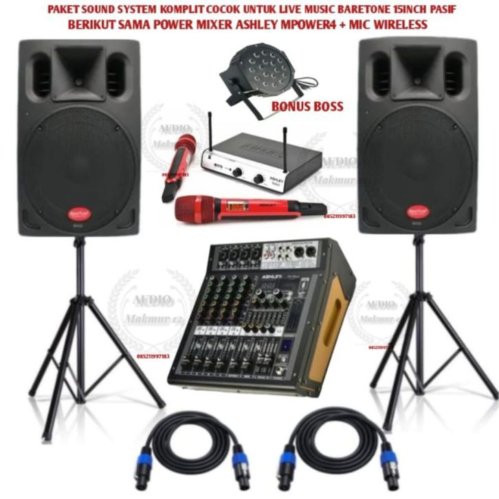 Paket Sound System Profesional BT-A1530W 15 Inch Pasif Power Mixer 4 Channel Dan Mic Wireless Ashley