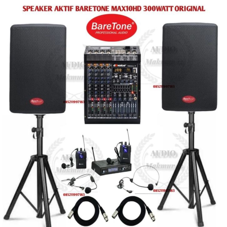 Speaker Profesional Aktif Baretone MAX10HD 250 Watt Mixer Profesional dbvoice Valentine4 Dan Mic Wireless